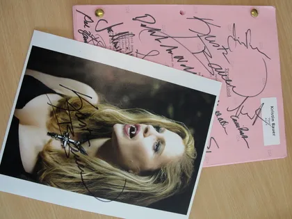 The second item up for auction is a signed True Blood script that was owned by Kristin Bauer van Straten. While the actual episode the script is for has not been mentioned, there are a few special extras that go along with it (if Kristin’s signature and handwritten notes aren’t enough). She has managed to get the script signed by the following True Blood actors: Alexander Skarsgård, Joe Manganiello, Sam Trammell, Deborah Ann Woll, Jim Parrack, Carrie Preston, Brit Morgan, Todd Lowe, Marshall Allman, Dale Raoul, Fiona Shaw, and Rutina Wesley. You also get a signed photo of Kristin as vampire Pam thrown in as well!