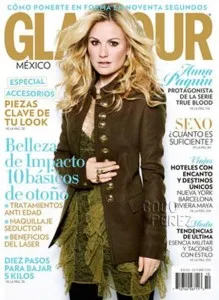 On October’s cover of Glamour Mexico is True Blood’s Anna Paquin. Anna Paquin is mostly known to us as Sookie Stackhouse who plays a small town waitress who gets caught up in the supernatural world that is circling around Louisiana. Anna is dressed in an olive green sheer shirt and beautifully smooth brown jacket with a confederate tailoring. This is a great look for her during these falls months.