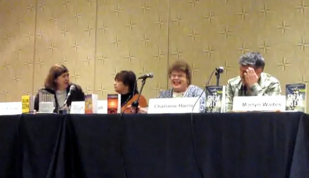 Charlaine Harris recently attended the 2009 Bouchercon World Mystery Convention, which was held in Indianapolis, Indiana. This convention celebrates the mystery genre of writing. We have found video of Charlaine sitting on one of the panels at Bouchercon. The first video shows Charlaine being introduced by the panel. There is a funny segment in the video where one of the panelists decides to see if Charlaine is telepathic like her hit character, Sookie, and answers a question without being told the question and Charlaine simply answers, “No, I never have”. Really quite a funny moment. Charlaine goes on to discuss how the Sookie character came about and how she is very similar to her own daughter who was growing up while Charlaine was writing the series. Charlaine also describes how she was able to invent this supernatural world that Sookie finds herself in.