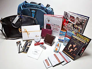 Besides the DVD that goes in both bags, men will receive their goodies in a Tumi duffel bag, which will hold a style book for men, Calvin Klein’s Euphoria for Men, and a custom shirt by Alexander West.