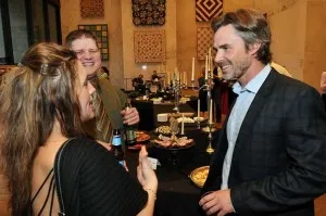 The event drew a crowd of True Blood fans from the local area and several states away. Also in attendance were his parents and several of his friends and classmates growing up. At a “meet and greet” before the interview, Sam mingled with all the people who had come to see him, signing autographs and taking pictures. One fan named Kaci recounted the evening with great excitement. She noted how friendly and personal Sam was with everybody. She asked him a question about what happened in the Season two finale of True Blood when Sam drank Bill’s blood to heal and whether he would now start to have some sexual fantasies about Bill like we’ve seen with Sookie and Lafayette: