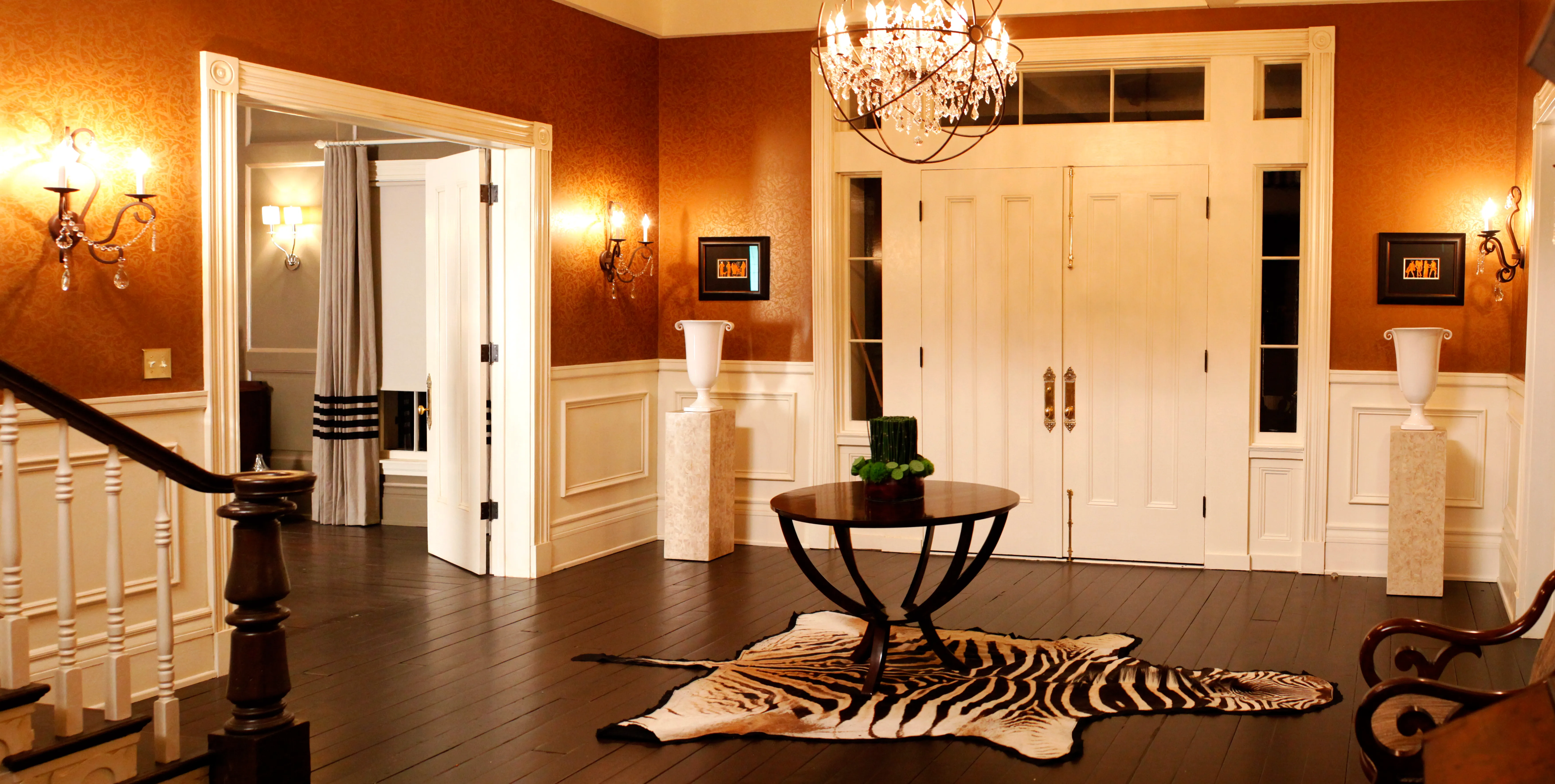 “Like all the rooms in Bill’s house remodel, it has a nice mix of old and new elements. The zebra rug is a nod to the hunting trophy rooms of the past. The chandelier, like the one in Bill’s study, takes the traditional element of a crystal chandelier and amps it up by encasing it in a rusted wrought iron sphere. Once we cross Bill’s threshold, we want audiences to feel his worldliness and quiet power. We want his house to reflect how he rules Louisiana with an understated but iron-fisted elegance.”