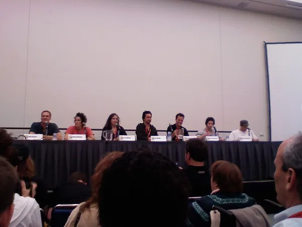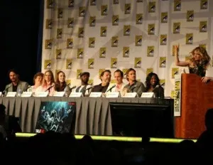 This is where the pandemonium began. The line setup for the True Blood signing line was absolutely horrific. There were probably around 1,000 fans eagerly awaiting the True Blood signing, and all had been told different things by security. By the time lining up for the panel was approved, there was a whole set of new usurpers in the “official” line, and those people were the ones who got in over everyone else. Security also allowed a smaller aisle near the WB Booth to be entirely blocked by even more fans waiting for the True Blood signing! The final effect was that a lot of people, myself included, could not get into the panel and were very upset. Were I to have been in charge of security and lines near the WB Booth, I would have done a lot of things differently. First, I would have put the signing in a different room and not on the dealer’s floor. Second, I would have held drawings to get in line for the signing. The insanity would have been prevented had that done been done. Hopefully next year, the True Blood signing line will be set up differently.
