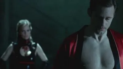 Next Sookie goes to Fangtasia to accuse Eric. She finds him in a compromising position with Yvetta, the new dancer from Estonia (introduced in minisodes). He casually (and nakedly) walks over to Sookie. She thinks he took Bill, but he has been with Yvetta all night. “Doing this? For the last six hours?” You seem surprised,” he responds. “Is Bill’s stamina not up to snuff.” Sookie’s next suspect is Lorena, and Eric assures her that he will investigate the matter further because it’s his duty as Sheriff to learn what happened to Bill, “even if I do want what is his.”