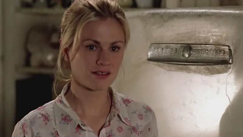 In one of the most distressing scenes to date, we find Maryann in the kitchen at Sookie“s…wearing an apron of Gran“s, sittingA?at the kitchen table, reading a book (in a scene almost identical to one in theA?first season when Gran waits up for Sookie.)A?…Tara arrives, after her harrowing night of being verbally attacked by everyone at Merlotte“s…and she visibly softens towards Maryann when she finds her waiting for her, having filled the fridge with all of her favorite foods and made dinner for her as well. It is just sick, sick, sick! Tara tells her, “Don”t go. I”ll call Sookie. I want you to stay. You”re so good to me.” Maryann asks Tara if she knows why she isA?so good to her. Tara just shrugs and Maryann tells her, “Because you need it so much and it makes you bloom like a flower.”