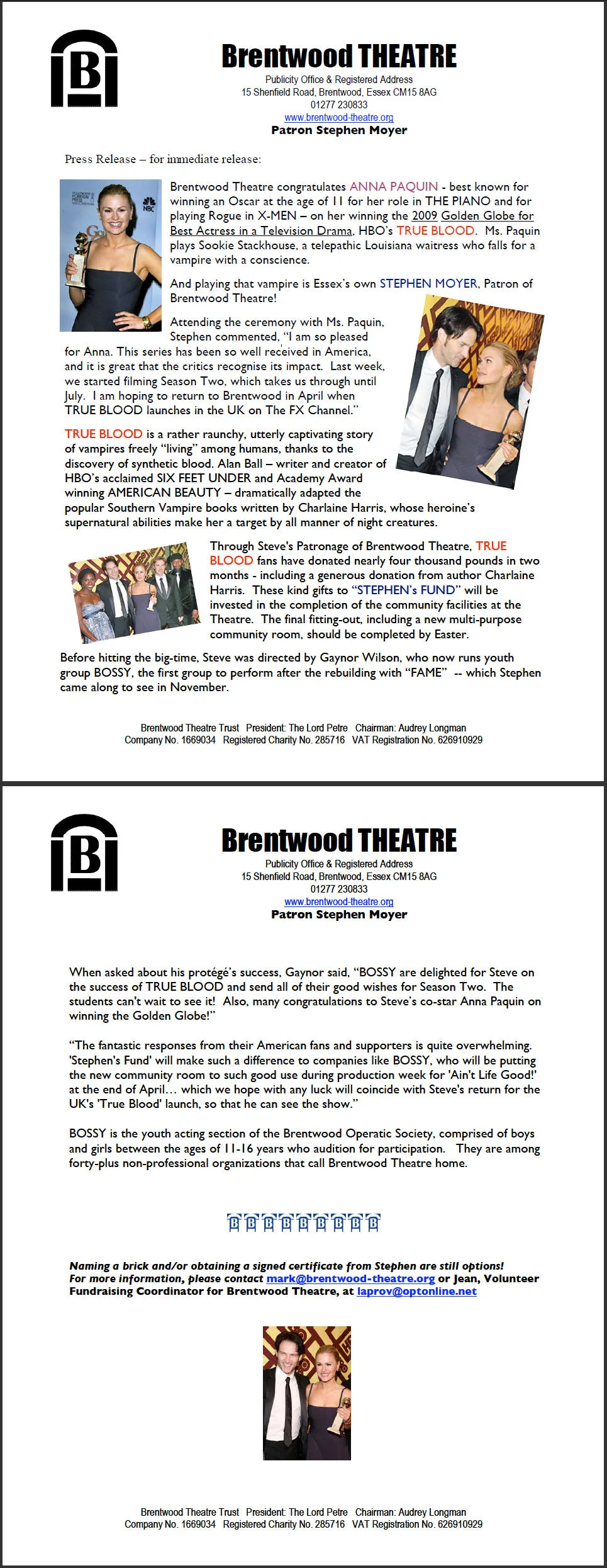 On the other side of the globe Anna Paquin’s family learned that she won Best Actress in TV Drama on Monday, mid-afternoon New Zealand time. Her family back home in New Zealnd stated that they were very excited and proud for her win and that “we’ll certainly be toasting Anna tonight, we’ll crack open a bottle of bubbly and toast her.” Now only will Anna’s family will soon have the opportunity to see Anna’s performance on “True Blood,” but so will the rest of New Zealand when Season 1 of “True Blood” premieres sometime in February. Based on the success it has had in North America it seems that it is destined to be a hit when it premieres across Europe, Asia, Isreal, South America, Australia and New Zealand.