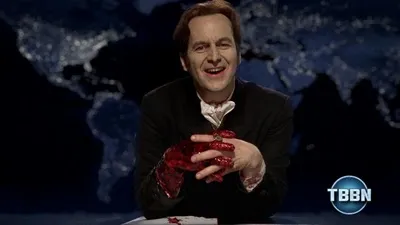 It appears that this newcomer to our small screens with his progressively scary newsreading abilities is enough to scare us in the middle of the night.