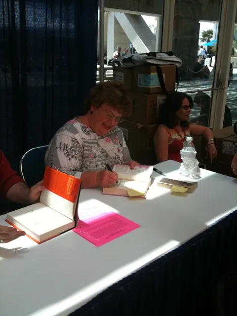 Charlaine Harris is up. On the sex scenes– told her hubs they’d have to move. from SookieBonTemps