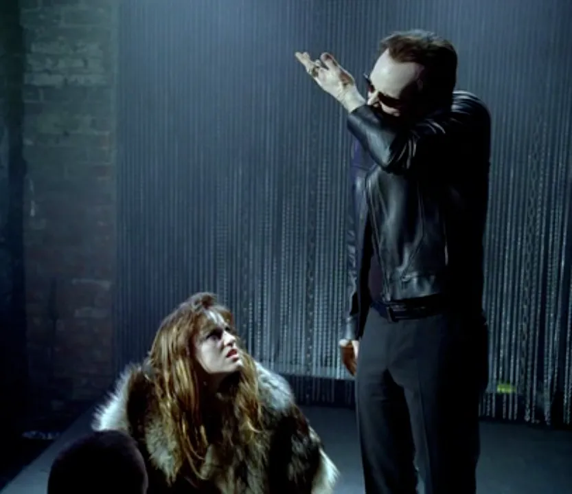 Lafayette has become attached to his fancy new car from Eric, so he sets off to sell the V. He meets with Calvin Norris in Hot Shot, but he doesn’t accept the offer. Lafayette is getting beat on by Calvin and his “brother-cousins” when Eric drops in from the sky to help change their minds. Lafayette and Eric are driving along talking business when Pam calls—the Magister is raiding Fangtasia looking for the V. The Queen set them up. Eric flies to her straight away, and finds the Magister burning her with the silver tip of his cane. Instead of turning in the Queen, Pam and Eric throw the blame on Bill. Eric asks for the opportunity to find the missing Bill and bring evidence of his blood betrayal. The Magister gives him two days, or he will use Pam to punish Eric: “They say the loss of a child is the deepest of despair.”