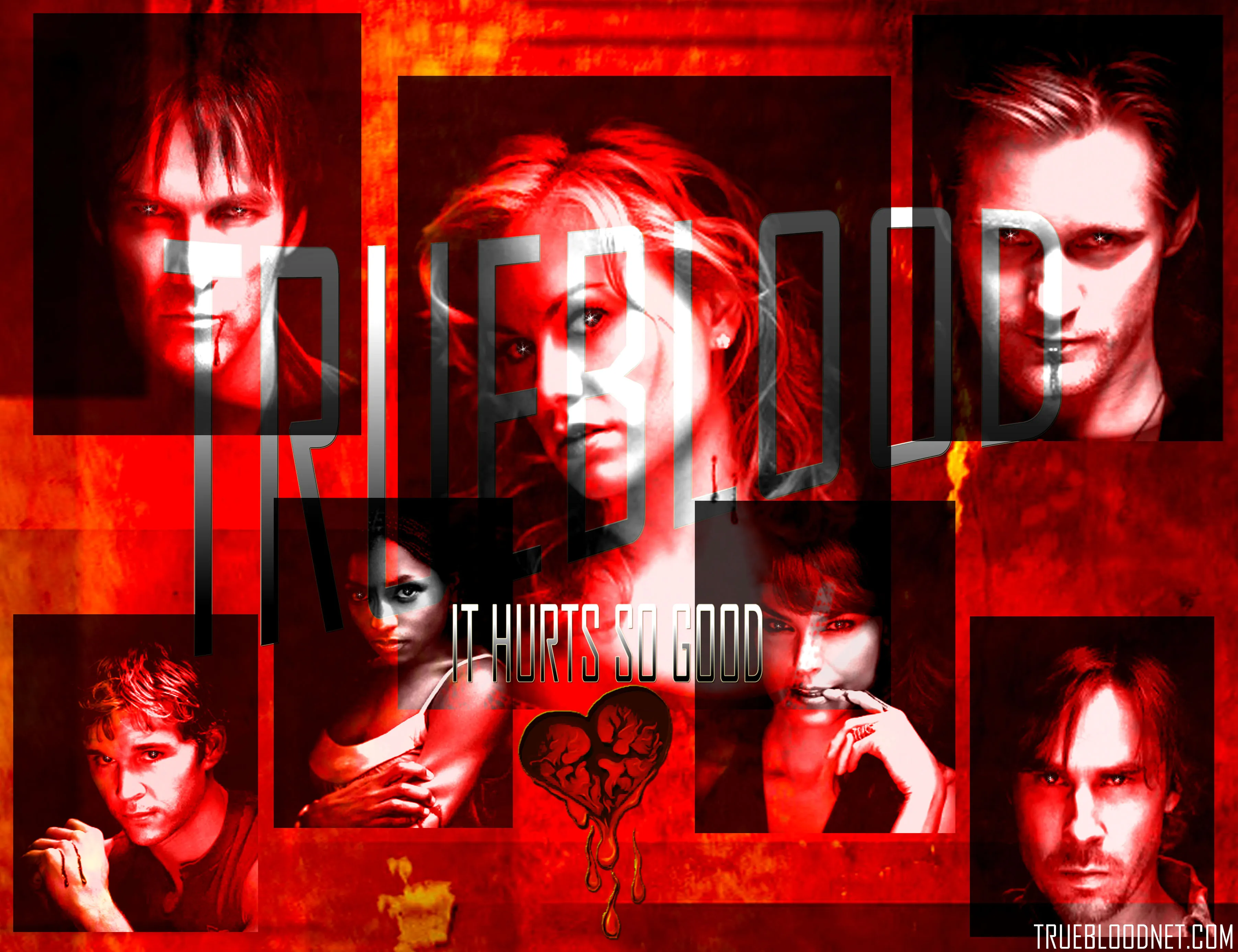 We here at TrueBloodNet.com always enjoy receiving e-mails, comments, photos and works of art from our readers and this time we would like to present Jessica’s contribution the website. Jessica put all the new HBO True Blood Season 2 posters together to create a wallpaper for other True Blood fans to enjoy! Thank you Jessica we know many people will put your wallpaper to good use. Click to enlarge image.
