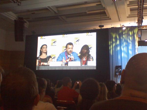 Last Updated 22:00 EDT Monday: The cast of Alan Ball‘s hit HBO TV vampire series True Blood are at the San Diego Comic-con. This post will feature twitpics and tidbits from fans during the True Blood panel discussion. Although many of us cannot be there we share the experience through the pictures provided by other True Blood fans. Don’t forget our Pictures, Sneak Peak Video, Livefeed of the Panel Discussion and Tidbits from Comic-Con! , True Blood at Comic-con: Autograph Signing Session and True Blood at Comic-con: The After Party posts! Enjoy!