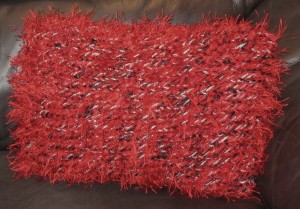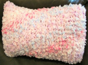 I gave Kristin a pillow I created that was inspired by her character, Pam. (Though you can’t see it, the actual pillow within is made of a black fabric with silver spider webs on it in honor of Pam’s tough-as-nails-persona. The pink case is in honor of Pam’s favorite color.) I also gave Kristin a t-shirt I’d made previously that says Ravenscroft/Stackhouse 2012 on the front and ‘Pam for President’ on the back. (At the time I made the shirt, Pam’s last name had not been changed.) I also created a similar shirt for Anna, which says ‘Sookie for VP’ on the back. The final gift I brought was for Alan Ball. He too got a pillow, but that one was directly inspired by True Blood.