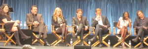 The panel started late, and opened with a clip package from Buffy the Vampire Slayer. Those of us in the audience who are/were Buffy fans cheered and clapped at this, since it can be argued that True Blood is the vampire show that took Buffy’s place on television and in film history. Afterwards, Alan came back to the podium to share a special clips package from True Blood seasons 1, 2, 3, and a special unfinished clip from season 4! The clip featured Jessica, Pam, Hoyt, and followers from the Fellowship of the Sun who were protesting in front of Fangtasia. Hoyt was a good boyfriend and defended himself, Jessica, and their relationship to the protesters. He told them that he felt he was a better Christian than they were because of the love in his heart, rather than the hatred. It was a beautiful scene, and I can’t wait to see the finished version when Season 4 finally begins this summer!