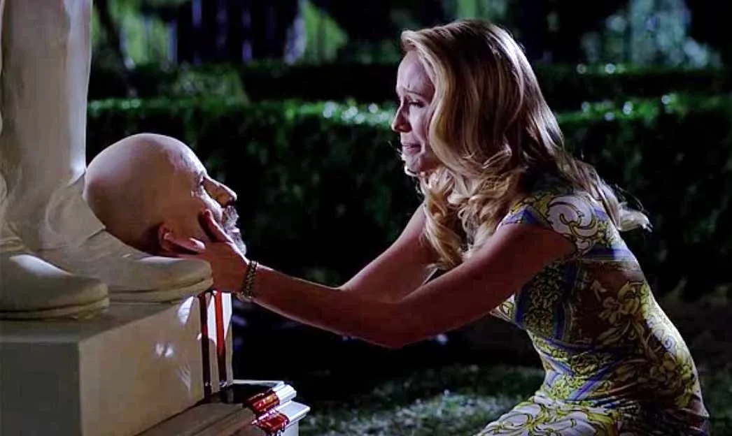 Sarah Newlin (Anna Camp) talks to a beheaded Governor Burrell (Arliss Howard) in HBO’s True Blood Season 6 Episode 7, entitled ‘In the Evening’ July 29, 2013 1046 × 624 True Blood Quickie: True Blood Season 6 Episode 7 “In the Evening” Recap