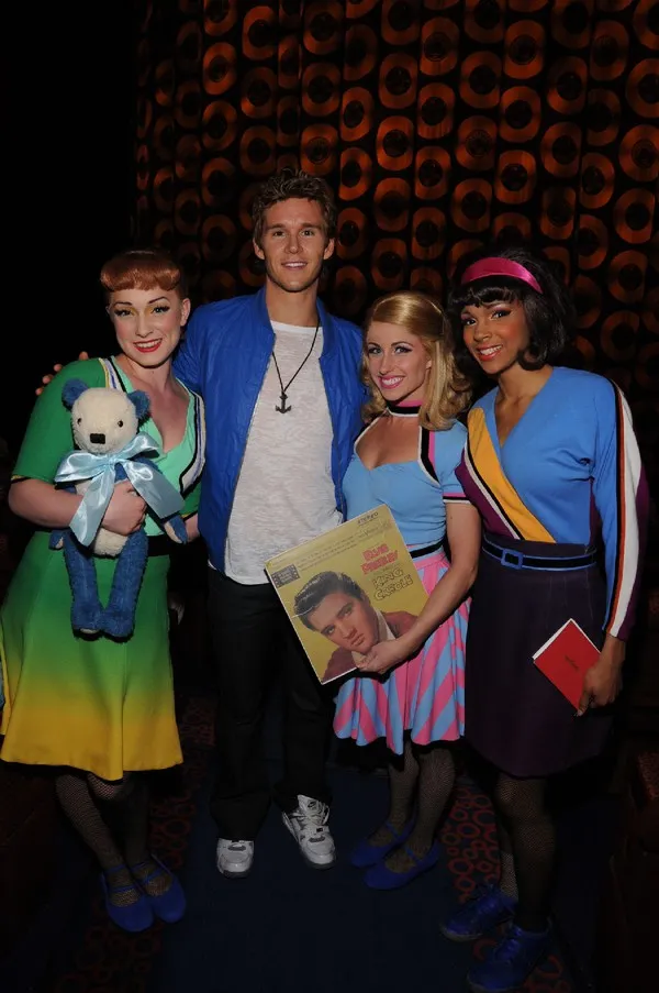 True Blood‘s Ryan Kwanten was in Las Vegas over the weekend and was at the Cirque de Soliel‘s Viva ELVIS show on Saturday, April 17, 2010 where he admitted to the troupe that his favorite Elvis Presley song is Hound Dog. Below is a photo of Ryan with the Cirque du Soleil troupe along with a photo with of some fans who were lucky enough to met him and take a photo with him. Many thanks to @Cirque for posting the photo of Ryan with the troupe and to @Erica_Seattle for posting the photo of Ryan with some True Blood fans.