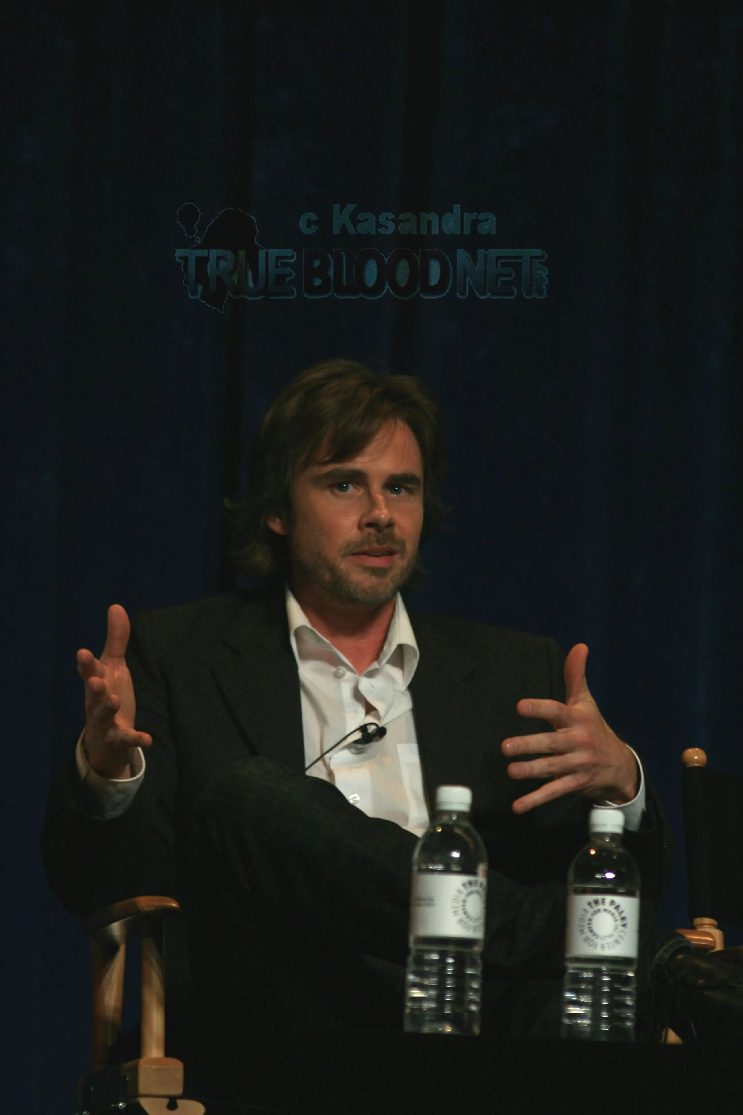 SAM: I read the first four of Charlaine’s books. Just to see if there was anything out there that I needed to know about him so there weren’t any surprises. I wanted to know all that in order to be faithful to the book fans. I do a lot of thinking about where he comes from. That informs a lot of where I start when I’m thinking about scenes and who he is. I look at his past at how he’d survived and made it as a teenager and young man without parents and as a shape-shifter, having to keep it secret who he really was. And also how he’s used that to his advantage.